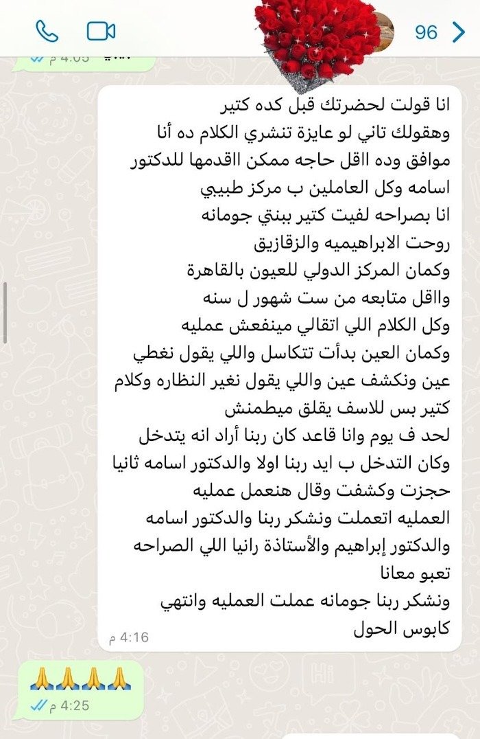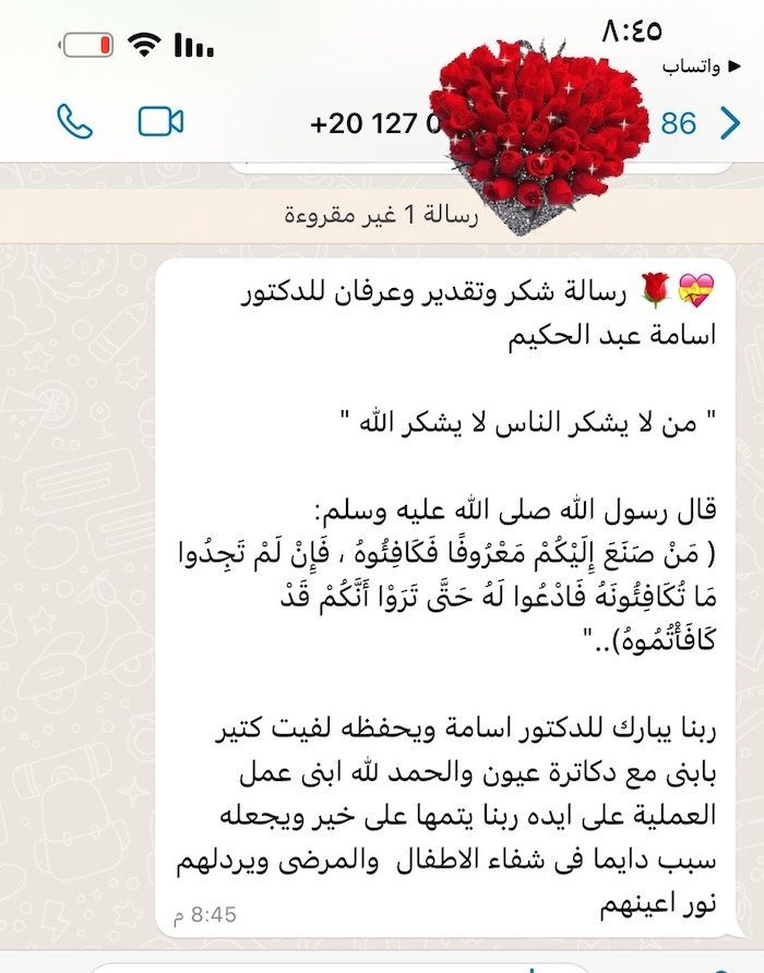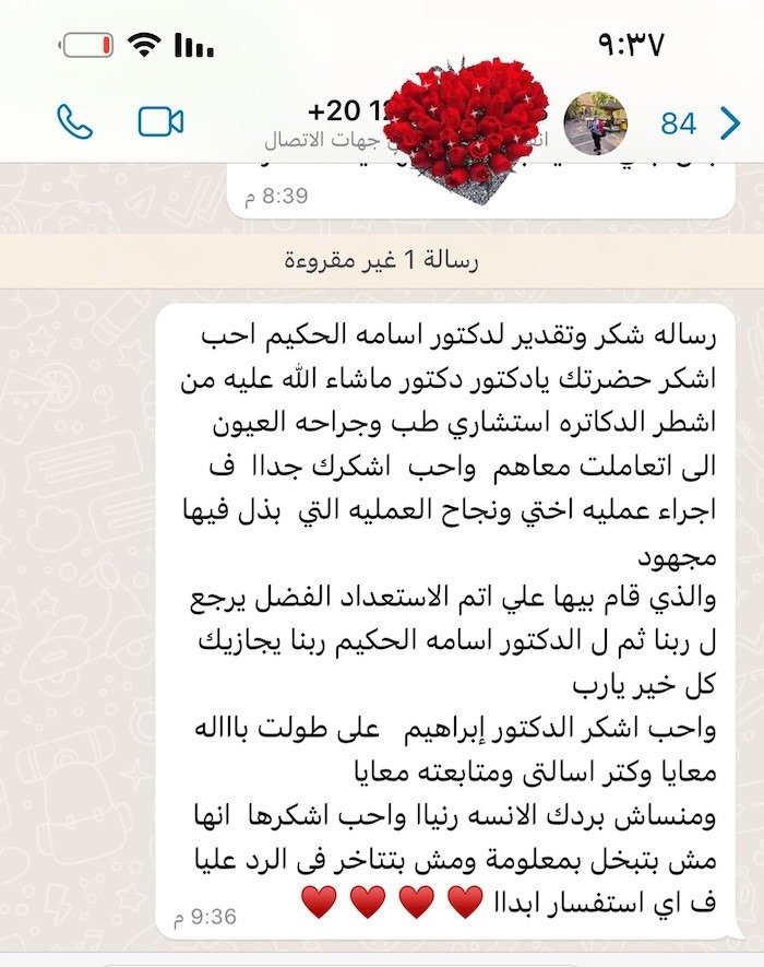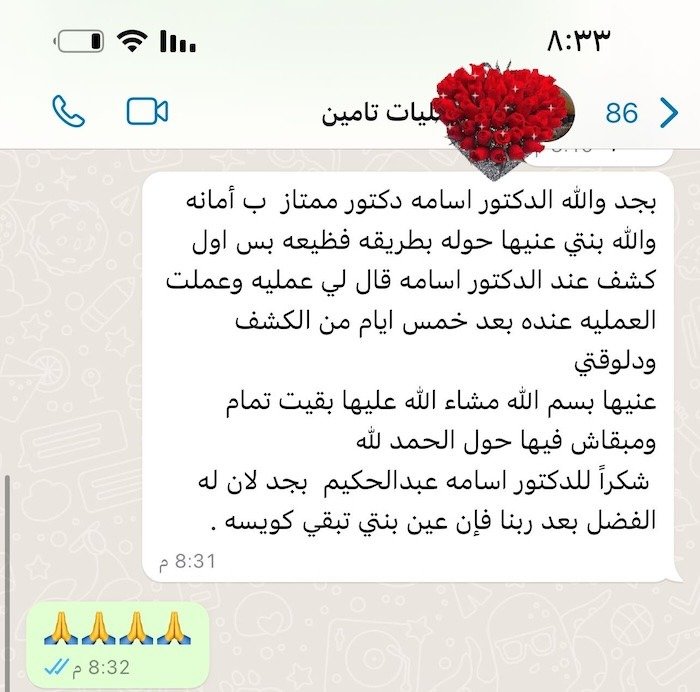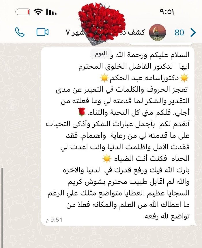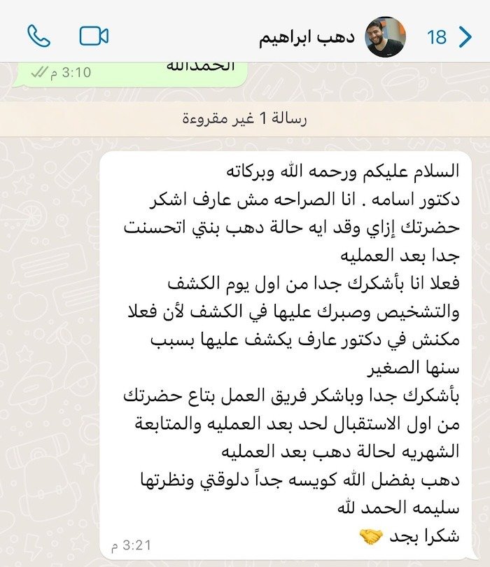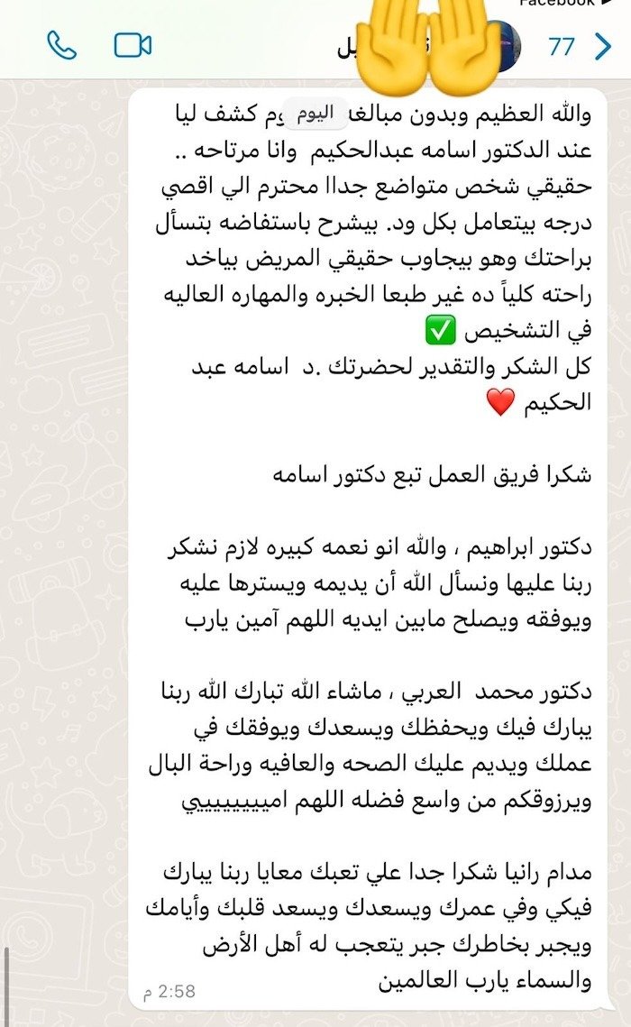 ثقة المرضى هي أكبر شهادة نعتز بها، ونسعى دائمًا لتقديم أفضل رعاية طبية لكل مريض