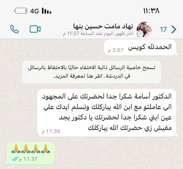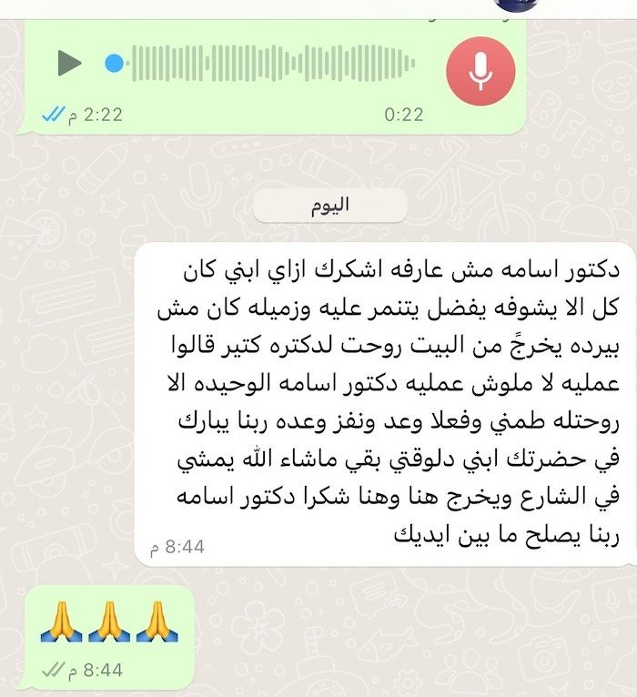يعرض هذا القسم رسائل بعض المرضى وأولياء الأمور بعد العلاج في عيادة